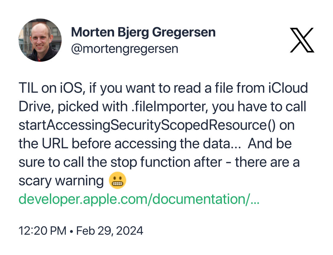 `startAccessingSecurityScopedResource()andstopAccessingSecurityScopedResource() - wrap reading the files in