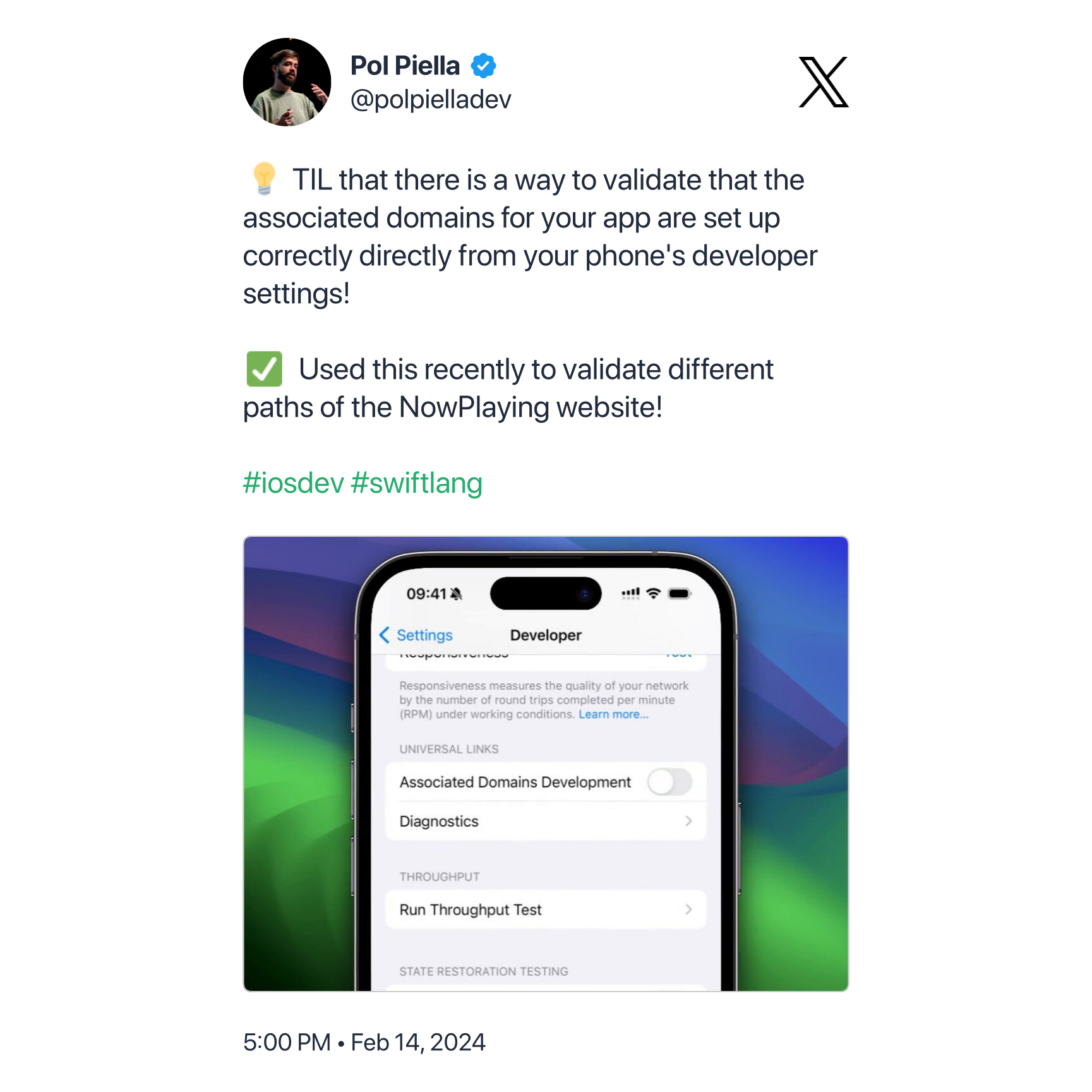 I remember the pain to verify that associated domains are configured correctly in the app and on the website. Now there's a built in tool: